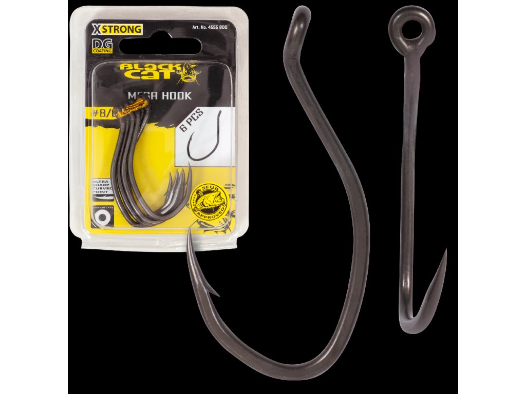 Mega Hook je najuniverzálnejší jednoduchý háčik na trhu. Vďaka svojej jedinečnej konštrukcii a ohnutému hrotu spĺňa Mega Hook prakticky všetky požiadavky na vlastnosti háčika. Dlhý ostrý hrot háčika sa bez námahy usadí v ústach rýb, či už na montáži s mŕtvou nástrahou, alebo na montáži s viacerými háčikmi na živé nástrahy. Ohnuté a navarené očko dokonca umožňuje bezproblémové použitie monofilných náväzcov. Jediný háčik, ktorý patrí do každej škatuľky s náčiním! dG Coating inovatívna povrchová úprava s oveľa hladším povrchom ako teflón®. štvornásobne vyššia odolnosť proti korózii v porovnaní s bežnými povlakmi.Dodatočné parametre