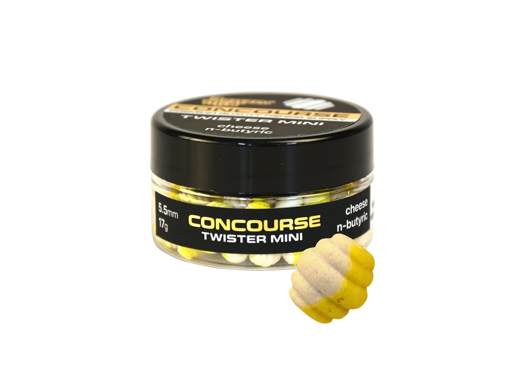 Concourse Twister Mini, podobne ako ich väčší bratia, vďaka svojej symetrickej, kruhovitej forme ponúkajú svet, ktorý je úplne neznámy rybám a ktorý skrýva množstvo variácií. Kúzlo novinky spočíva v tom, že vieme dobre, že to bude so zvýšením počtu záberov! Nástrahy sú vo výrobnom stave dlhé 5,5 mm a vyrábajú sa vo dvojfarebnom prevedení vo veľmi silných, chytných, obľúbených arómach, ako sú čokoládovo-pomarančová, jahodová, mango, rybí zmes, syrové kyseliny, jahoda-kalmár, cesnak-mandle a kril.