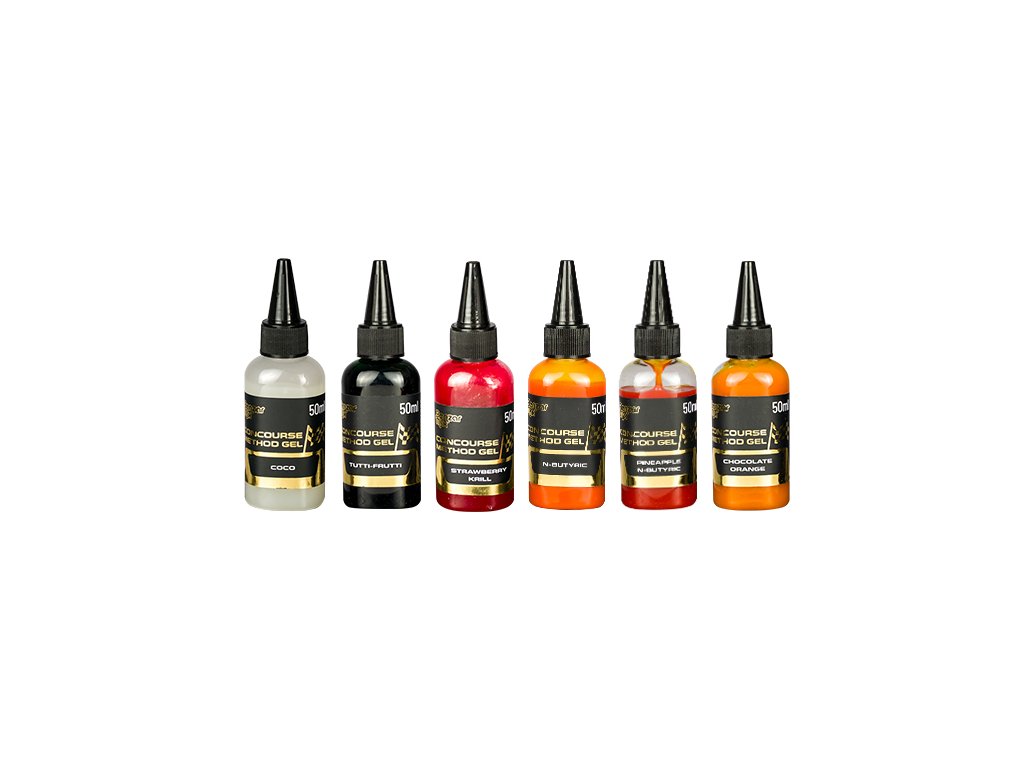 Arómy Concourse Gel podľa nás dokážu všetko, čo má jedna ťažká, veľmi hustá aróma dokázať. Popri výraznej farbe a vôni, podobne ako nástrahy Concourse Wafters, majú veľmi príjemnú vôňu a samozrejme obsahujú špeciálny zvyšovač chuti do jedla, ktorý aj v pretekárskych podmienkach robí tieto arómy brutálne úspešnými.