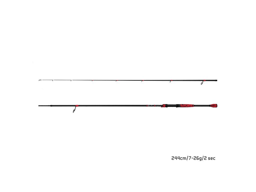 Rýchly, ľahký, dizajnovo odlišný od všetkých ostatných prútov. Presne to definuje prívlačový prút Delphin RedCODE. Séria RedCODE prináša na trh novú dimenziu prívlačových prútov. Prúty výborne sedia v ruke vďaka netypickému , zezanému tvarovaniu rukoväte z EVA peny, ktoré Vám umožní priamy kontakt s blankom prútu. Delená rukoväť prevedená v červeno-čiernej maskáčovej kombinácii výrazne napomáha k veľmi dobrému vyváženiu prútov RedCODE aj počas celodenných rybačiek. Kvalitný 24T karbón ktorý bol použitý na celej dĺžke blanku výborne dopĺňa semiparabolickú akciu prútu a záber sa tak okamžite prenáša do rukoväte, čo dovoľuje okamžitú reakciu a rýchly zásek. Vyviazanie posledných troch očiek bielou farbou Vám uľahčí rozoznať aj ten najopatrnejší záber od nenásytných dravcov. Presne určená veľkosť očiek s výplňou SiC a ich rozloženie umožňujú dokonale presné nahadzovanie nástrahy do lovného miesta. Technické parametre: Model: 183cm/0.5-5g Počet dielov: 2 Priemer blanku nad rukoväťou: 7,0mm Počet očiek: 8 Transportná dĺžka: 94,5cm Hmotnosť: 82g Rukoväť: delená, EVA pena Dĺžka rukoväte (od spodnej časti prúta po stred sedla): 25,5cm Model: 213cm/2-7g Počet dielov: 2 Priemer blanku nad rukoväťou: 8,7mm Počet očiek: 9 Transportná dĺžka: 109,5cm Hmotnosť: 84g Rukoväť: delená, EVA pena Dĺžka rukoväte (od spodnej časti prúta po stred sedla): 28,5cm Model: 228cm/3-18g Počet dielov: 2 Priemer blanku nad rukoväťou: 9,2mm Počet očiek: 9 Transportná dĺžka: 117,5cm Hmotnosť: 102g Rukoväť: delená, EVA pena Dĺžka rukoväte (od spodnej časti prúta po stred sedla): 29,5cm Model: 244cm/7-26g Počet dielov: 2 Priemer blanku nad rukoväťou: 11,5mm Počet očiek: 9 Transportná dĺžka: 126cm Hmotnosť: 128g Rukoväť: delená, EVA pena Dĺžka rukoväte (od spodnej časti prúta po stred sedla): 32cmDodatočné parametre