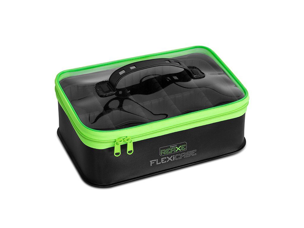 Delphin REAXE FlexiCASE je dômyselne navrhnutý organizér z EVA materiálu, ktorý Vám umožní uloženie rôzneho feedrového vybavenia, od krmítok a háčikov až po samotné nástrahy. Vďaka použitému EVA materiálu a kvalitným zvarom je organizér nepremokavý, čím dokonale ochráni Vašu rybársku výbavu aj počas dažďa. Okrem nepremokavosti sa tento materiál veľmi ľahko umýva a neabsorbuje pachy. Veľkou výhodou organizéru je jeho univerzálnosť. Vďaka odnímateľnej vnútornej časti a odnímateľným prepážkam, si ho môžete jednoducho upraviť presne podľa vašich potrieb. Aby sa predišlo poškodeniu obsahu, sú prepážky obalené v EVA pene. Veko organizéru je vyrobené z priehľadného materiálu, vďaka ktorému budete mať vždy dokonalý prehľad o obsahu vo vnútri. Pre lepšiu manipuláciu je na veku pevná gumová rúčka. Organizér je ladený do čiernej farby a je vybavený zipsom výraznej zelenej farby, vďaka čomu dokonale zapadne ku ostatným produktom zo série REAXE. Technické parametre: Vonkajší rozmer: 31x10x21cmDodatočné parametre