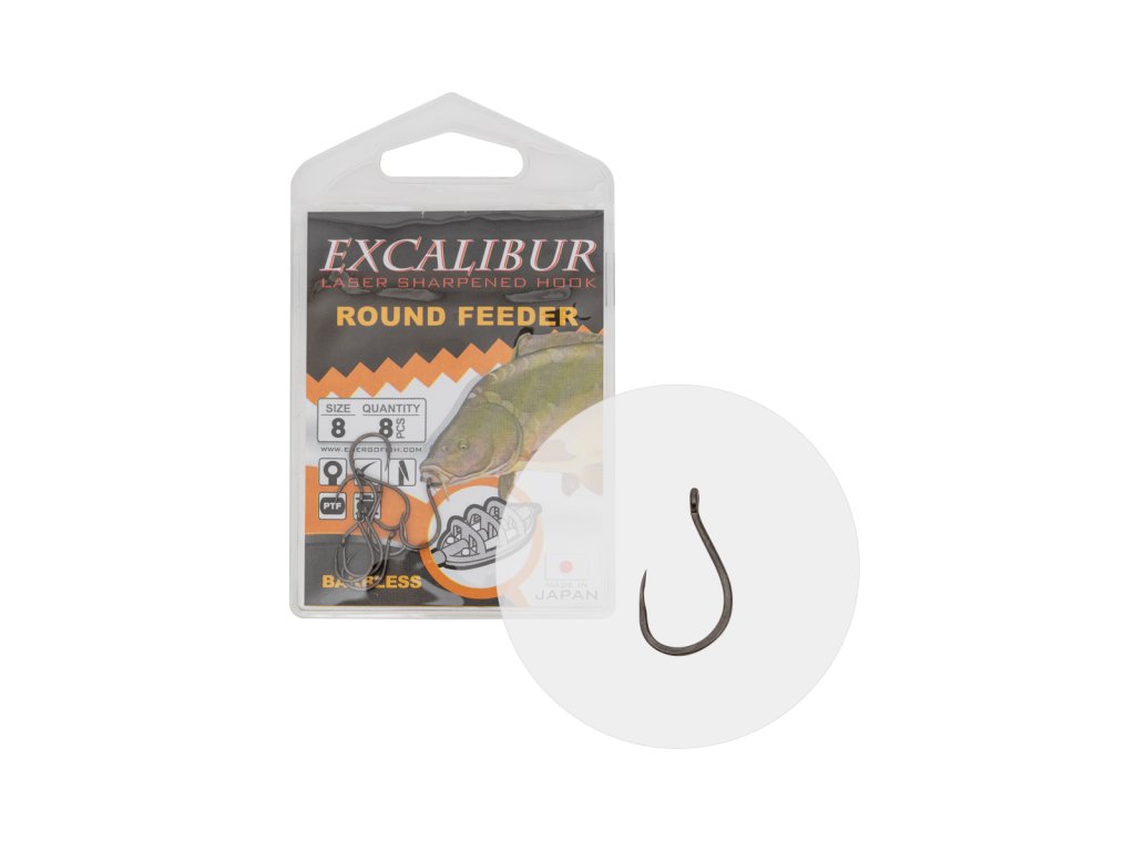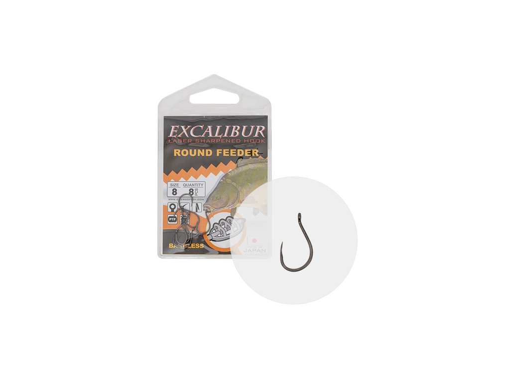 Rybolov nie je len o tom, kto uloví najväčšie množstvo rýb! Do popredia sa dostáva aj ich ochrana, a radosť z rybolovu. Háčiky bez brady sú jedným z najvýraznejších výsledkov ochrany rýb. Nevytvára tak veľkú ranu ako klasický háčik s bradou a čo je najdôležitejšie, počas zdolávania nepopustí. Aj vyslobodenie z háčika je veľmi ohľaduplné. Mnohí to nepotvrdia, ale háčik bez brady sa lepšie zasekne!!! A rovnako udrží rybu, ako jeho druhovia s bradami. Treba dbať len na jednu vec, nech sa neuvoľní šnúra počas zdolávania! Tento Excalibur Round Feeder Barbless reprezentuje veľkú kvalitu MADE IN JAPAN!Dodatočné parametre
