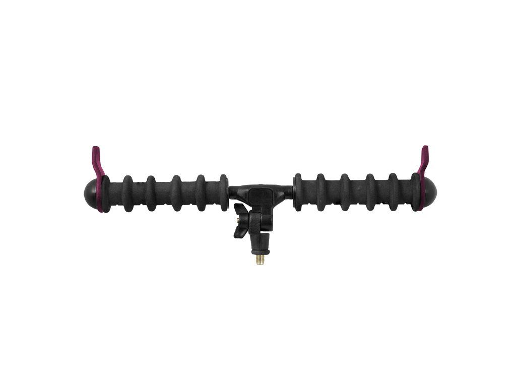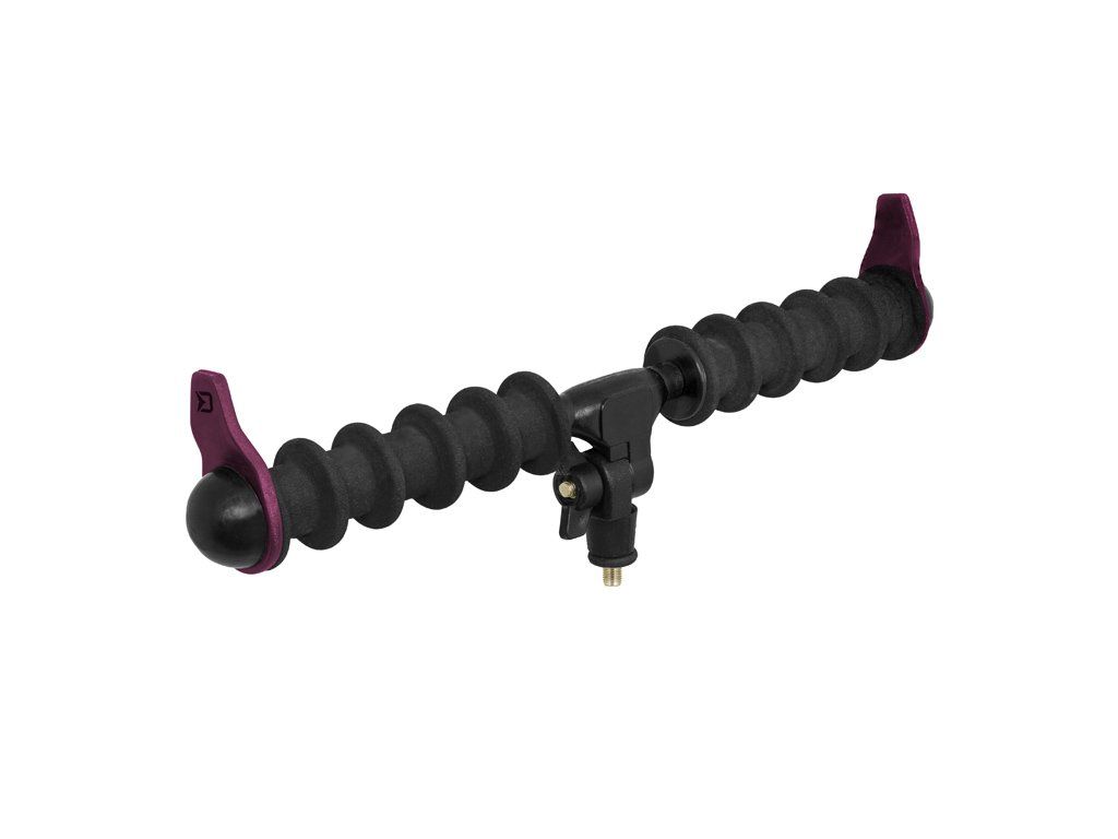 Feeder držiak Delphin EVASTIC SetUp so šírkou 25cm, je veľmi praktickou a dômyselne navrhnutou pomôckou, ktorá je určená hlavne pre lov feeder technikou. Vyrobená je z čiernej EVA peny, ktorá je ľahká a šetrná k blanku. Jej nepravidelný tvar odkladacieho priestoru pre prút, ho dokonale drží na svojom mieste. Na oboch stranách je ukončená plastovým výbežkom v bordovej farbe, ktorý zamedzí prútu spadnúť na zem pri razantnom zábere. Držiak je osadený univerzálnym závitom a kĺbom s možnosťou nastavenia uhla sklonu podľa potreby a terénu.Dodatočné parametre