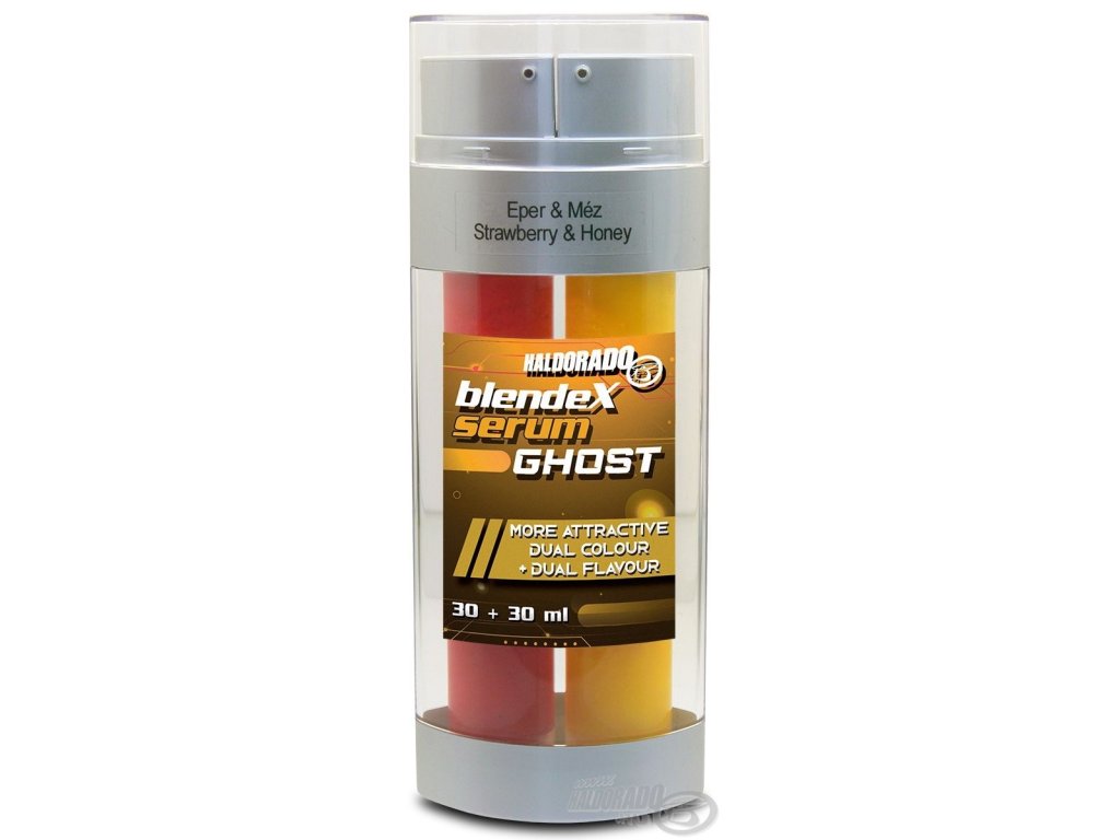 A BlendeX Serum Ghost – csakúgy, mint elődje – lehetőséget biztosít két különböző ízű aroma együttes használatára, sőt, tulajdonképpen az ízek, változatok maradtak ugyanolyanok, mint voltak. Egyedül a beltartalom változott meg némiképp, ugyanis törekedtünk arra, hogy az aromák még tovább adagolják magukból a csábító attraktorokat, étvágyfokozókat, valamint kellemes ízüket. Ezeken kívül újdonság a Ghost esetében, hogy vizuális csalogatóhatást is kelt, ugyanis ezek a sűrű folyadékok a vízben látványos felhőt képeznek, méghozzá olyan színűt, amilyen maga az aromakoncentrátum. A Ghost aromát lehet a csalira, a megtöltött kosárra vagy PVA csomagokba is nyomni az extra íz- és csalogatóhatás érdekében, bár eredményes felhasználásának csak a fantázia szab határt! Természetesen a PVA tasakot, hálót sem oldja. A BlendeX Serum Ghost ugyanabban a hét fogós változatban kerül forgalomba, mint az elődje. Ezek a Tintahal + Polip, Eper + Méz, Fokhagyma + Mandula, Ananász + Banán, Vajsav + Mangó, TripleX (Nagy Ponty + Tintahal + Frankfurti Kolbász) és a Kókusz + Tigrismogyoró.Dodatočné parametre
