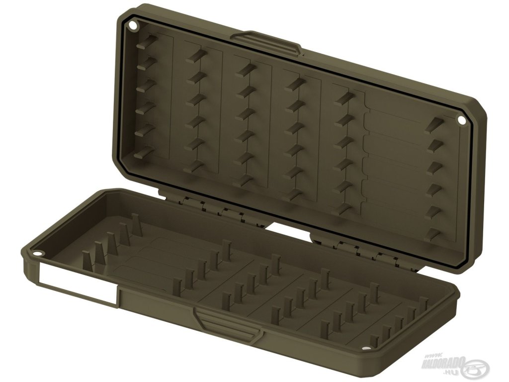 A Haldorádó termékek fejlesztése során az elsődleges szempont mindig a funkcionalitás, a könnyen kezelhetőség, és a praktikum volt. Igyekszünk a felhasználóink számára olyan horgászcikkeket készíteni, amelyek eredményességüket és kényelmüket szolgálják. 2025-ben egy új, horgászdobozokból álló termékcsalád kerül forgalomba, melyek megkönnyítik az aprócikkek tárolását és rendszerezését. Elsősorban a pontyhorgászok és a feeder technikát használók számára nyújthatnak ötletes megoldásokat ezek a box – ok, melyek kemény műanyagból, erős csatokkal készültek a hosszú élettartam érdekében. Az MF Rig Board Box az előre megkötött horogelőkék rendszerezett és biztonságos tárolását szolgálja. Többféle méretben lehet a horogelőkéket belehelyezni. A short/rövid változat elsősorban method – os előkék tárolását és rendszerezését szolgálja. Az előkés doboz négy db mágnessel, vízhatlanul záródik, így védve a megkötött horgokat a korrodálódástól. Tulajdonságok: - anyaga: PC + ABS - mérete: 186 X 91 X 28 mm - šürke šín - mágneses záródás - mellékelt öntapadós matricával