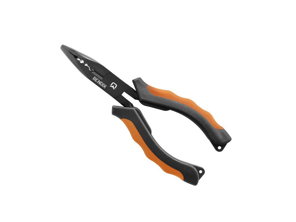 Delphin BENDIX sú multifunkčné kliešte so zahnutou špičkou, ktoré sú určené pre vyslobodzovanie háčikov z tlám dravých rýb v prípadoch zaseknutia v tej najtvrdšej časti. Ich dĺžka je 16cm. Vnútorná strana ramien klieští poskytuje dostatočne drsnú plochu pre uchopenie aj veľkých háčikov vrátane dvoj a trojháčikov. Navyše sú ich čeľuste vybavené strihačom oceľových a wolframových laniek a krimpovacou časťou pre jednoduché aj dvojité krimpy. Sú vyrobené z ocele s vysokým podielom uhlíka a ich obe rúčky sú vybavené plastom oranžovej a čiernej farby, ktoré sú dobre viditeľné za každých podmienok a dobre padnú do ruky. Na oboch ramenách rukoväte sa nachádzajú otvory na prevlečenie šnúrky. S kliešťami BENDIX budete pripravený na každú situáciu pri love dravcov.Dodatočné parametre