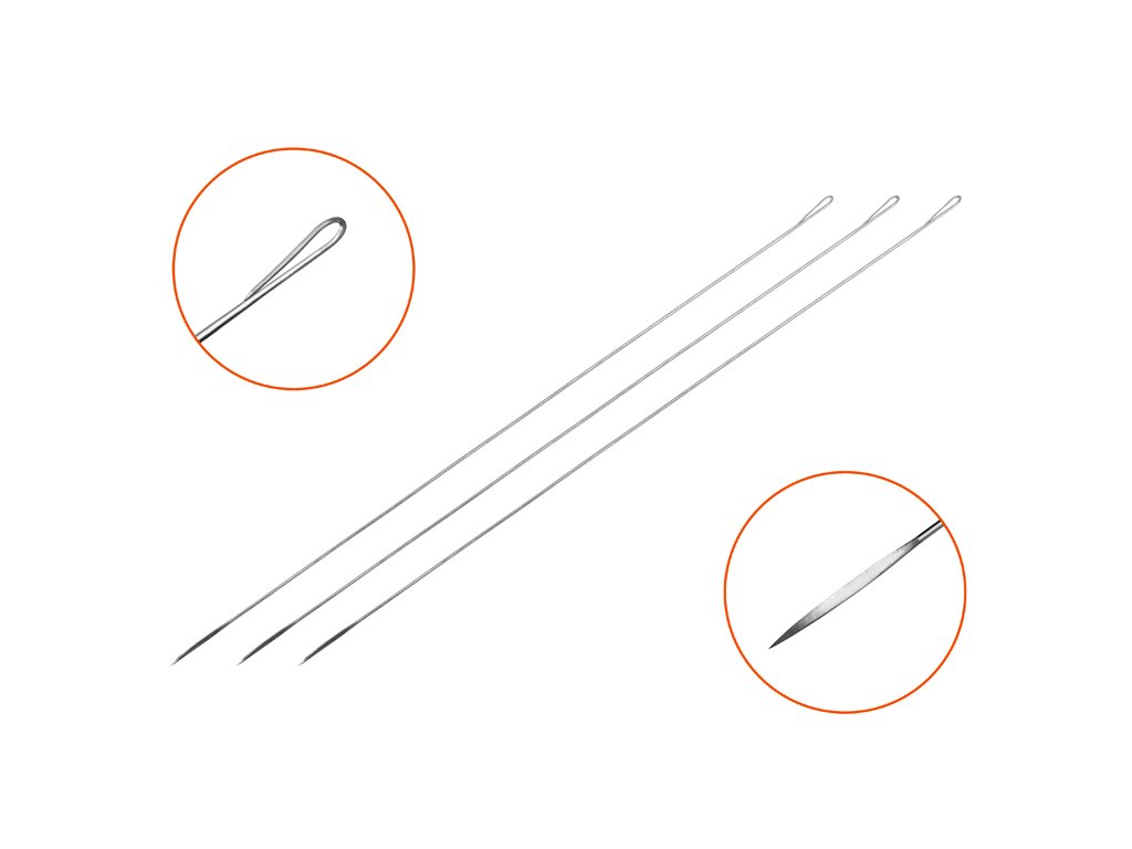 Vo výbave každého lovca dravých rýb nesmie chýbať prešívacia ihla. Špeciálny tvar hrotu spoločne s hrúbkou drôtu ihly umožní bezproblémové našitie nástrahovej rybky priamo popod kožu. Vďaka upravenej hrúbke ihla nestráca svoju pevnosť, ale zároveň je šetrná voči nástrahe. Ihla je ukončená očkom, do ktorého môžete uchytiť lanko a bez problémov si nástrahu pripravíte na lov. Mysleli sme aj na stratu ihly a preto sme sa rozhodli do balenia umiestniť tri kusy pre každý prípad.Dodatočné parametre
