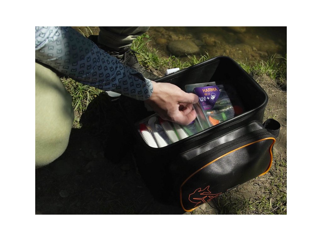 Praktická prívlačová taška, vyrobená z kvalitného EVA materiálu, ktorá poskytuje dostatok miesta na uskladnenie rôzneho vybavenia a nástrah, ktoré budete potrebovať pri love dravcov. Vďaka nepremokavému EVA materiálu a kvalitne zvareným švom, Delphin EvaSPIN WALK spoľahlivo ochráni všetok obsah aj v nepriaznivých daždivých podmienkach. Okrem odolnosti voči vode je tento materiál tiež ľahko umývateľný a neabsorbuje pachy, čo umožňuje bezpečne prenášať aj rôzne tekutiny, ako napríklad dipovacie spreje. Na prednej strane sa nachádza zipsovateľné vrecko, ktoré poskytuje extra priestor na drobnejšie príslušenstvo, čo ešte viac zvyšuje praktické využitie tašky. Prívlačové tašky EvaSPIN majú moderný dizajn v kombinácii čiernej a sivej farby, ktorú dopĺňajú oranžové prvky, ako napríklad logo s vyobrazením šťuky. Pre pohodlný a jednoduchý transport je taška vybavená dĺžkovo nastaviteľným ramenným popruhom. Do vnútorného priestoru tašky je možné uložiť rôzne plastové boxy, ako napríklad Delphin TBX One 225-15P, pričom do predného vrecka ideálne zapadne napríkald krabica Delphin TBX One 210-6P, ale aj ďaľšie. Technické parametre: Rozmer: 31x21x19cm Rozmer predné vrecko: 24x5x17cm Objem: 12LDodatočné parametre
