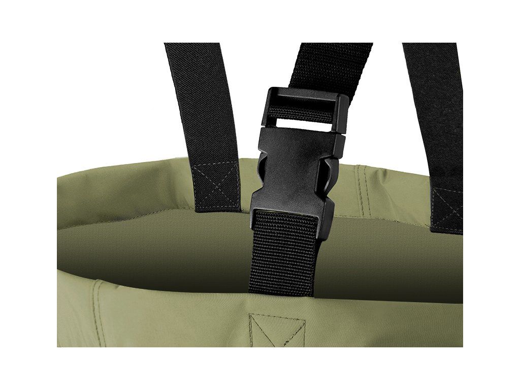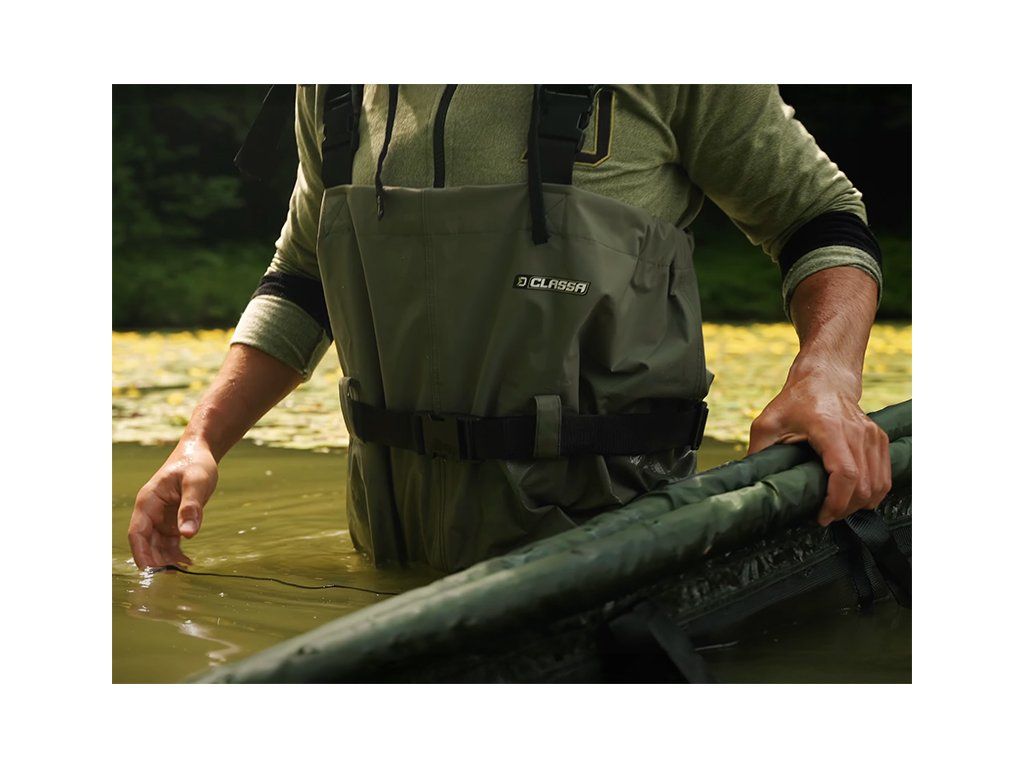 Delphin CLASSA sú pohodlné a spoľahlivé prsačky za veľmi priaznivú obstarávaciu cenu. Vyznačujú sa výbornými vlastnosťami a kvalitne spracovanými detailami, akými sú švy a spoje medzi materiálmi. Zvolený materiál je špecifický svojou nízkou hmotnosťou, flexibilitou a absolútnou vodeodolnosťou. Vďaka týmto parametrom sa v prsačkách CLASSA budete cítiť komfortne aj pri zvýšenej aktivite. Okrem štandardných nastaviteľných popruhov na plecia, disponuje tento model aj vyberateľným opaskom, čo umožní ešte lepšie prispôsobenie postave rybára. Veľkou výhodou utiahnutého opasku je taktiež obmedzenie možnosti rýchleho natečenia vody do prsačiek v prípade neželaného pádu pri pohybe vo vode. Gumené čižmy s odolnou a stabilnou podrážkou vám umožnia pohodlné brodenie v rôznych podmienkach. Samozrejmosťou sú aj výčnelky v oblasti päty pre ľahšie vyzúvanie. Zloženie: taslon / PVCDodatočné parametre