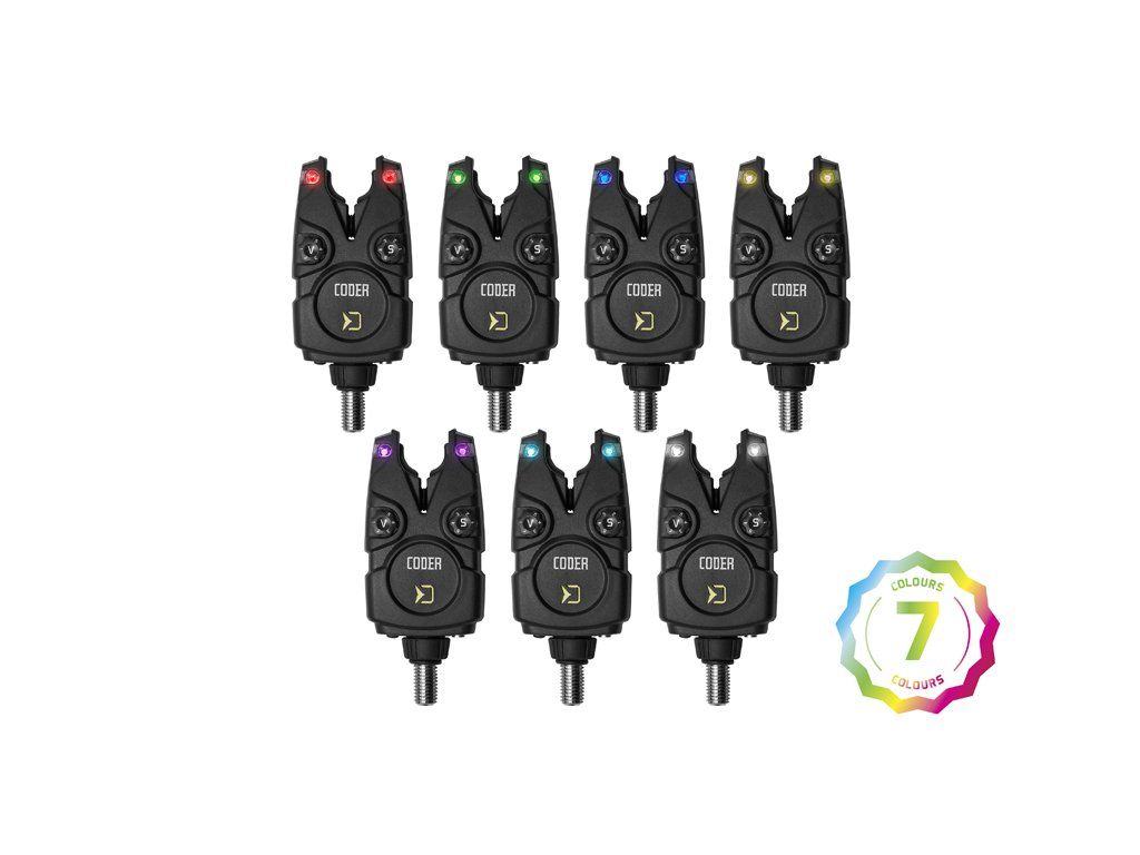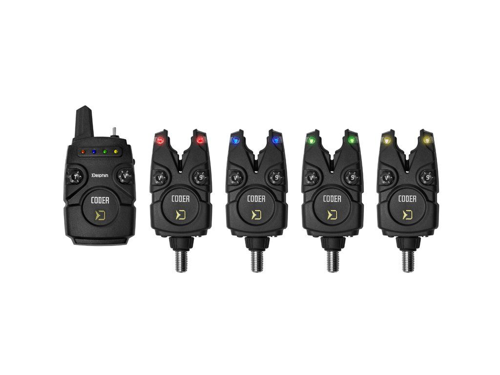 Delphin CODER je sada elektronických signalizátorov s príposluchom, pri ktorej sa stretol ideálny pomer priaznivej ceny s výkonom. Jej prednosťami sú najmä spoľahlivosť a 100% funkčnosť, ktorou sa môže bez problémov rovnať aj s drahšími sadami. Signál medzi signalizátormi a príposluchom sa dokáže v ideálnych podmienkach preniesť na vzdialenosť až 140 m. Celá sada je dodávaná v tvrdom plastovom kufríku, ktorý sa stará o bezpečnosť pri transporte. Signalizátor je napájaný 1x12V batériou typu LR23A, ktorá disponuje dostatočne dlhou výdržou. V prípade slabej batérie vás signalizátor upozorní krátkym pípnutím. Pomocou spínača "V" je možné vybrať jednu z 5. úrovní hlasitosti, vrátane tichého módu. Taktiež si je možné navoliť požadovaný tón a úroveň citlivosti (v rozmedzí 1-9cm), ktoré majú rovnako 5 rôznych úrovní. Nespornou devízou signalizátorov zo sady CODER je možnosť výberu spomedzi 7 farieb signalizačnej LED diódy. Každý si tak vyberie svoju obľúbenú a pokiaľ zatúžite po zmene, tak si jednoducho zvolíte inú farbu podľa návodu. Na spätný záber vás upozorní odlišný tón a po každom zábere sa rozsvieti na dobu 15 sekúnd pamäťová dióda. V spodnej časti sa nachádza vstup pre 2,5 mm konektor pre pripojenie svietiaceho indikátora. Počas nočného lovu je možné zapnúť taktiež pozičnú diódu. Príposluch spoľahlivo signalizuje záber zvukovo, svetelne a v prípade prepnutia páčky do polohy vpravo aj vibračne. Pomocou spínača "V" je možné si vybrať jednu z 5. úrovni hlasitosti vrátane tichého módu a spínačom s označením "T" zas navolíme požadovaný tón. Príposluch disponuje štyrmi farebnými LED diódami, ktoré po zábere svietia nepretržite 15 sekúnd. Napájaný je pomocou 1x9V batérie. V prípade že sa jej životnosť blíži ku koncu dôjde k indikácii nepretržitým krátkym pípaním. Príposluch si rovnako ako signalizátory uchováva všetky zvolené nastavenia v pamäti. Do kufríka tejto sady je možné uložiť maximálne konfiguráciu 3+1 (3 ks signalizátorov a jeden prijímač). Sadu CODER je možné spárovať so svetlom LightCONTACT. Obsah balenia: Signalizátory záberu (podľa sady) 1x Prijmač 1x Transportný kufrík 1x Držiak prijímača na opasok Prijímač/funkcie 5 úrovní hlasitosti, vrátane tichého módu (spínač V) 5 rôznych tónov signalizácie (spínač T) Vibračný mód (pákový prepínač-poloha vpravo) 4 farebné signalizačné LED diódy Zvolené nastavenia uchováva v pamäti Pákový prepínač ZAPNÚŤ/ VYPNÚŤ/ VIBRÁCIE Pamäťová dióda - svieti nepretžite 15 sek. po zábere Indikácia slabej batérie (nepretžité krátke pípanie) Mód testovania dosahu súpravy Dosah 140m v závislosti od terénu Napájanie 1x9V batéria Signalizátor/funkcie Vodeodolný 5 úrovní hlasitosti, vrátane tichého módu (spínač V) 5 rôznych tónov signalizácie 5 úrovní citlivosti (spínač S) 7 možných farieb signalizačnej diódy Zvolené nastavenia uchováva v pamäti Signalizácia spätného záberu -odlišný tón Pamäťová dióda-svieti nepretžite 15 sek. po zábere Indikácia slabej batérie krátkym pípnutím Pozičná nočná dióda Protišmykové lôžko pre prút Vstup pre 2.5mm jack Napájanie 1x12V (typ LR23A) Sada 2+1 vždy obsahuje modrý a červený signalizátor. Sada 3+1 vždy obsahuje modrý, červený a zelený signalizátor. Sada 4+1 vždy obsahuje modrý, červený, zelený a žltý signalizátor.Dodatočné parametre