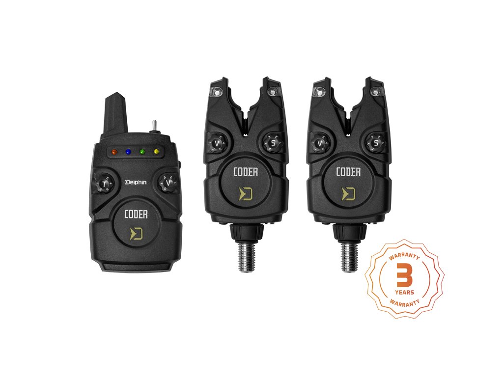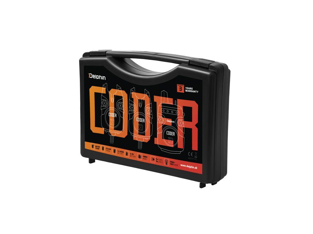 Delphin CODER je sada elektronických signalizátorov s príposluchom, pri ktorej sa stretol ideálny pomer priaznivej ceny s výkonom. Jej prednosťami sú najmä spoľahlivosť a 100% funkčnosť, ktorou sa môže bez problémov rovnať aj s drahšími sadami. Signál medzi signalizátormi a príposluchom sa dokáže v ideálnych podmienkach preniesť na vzdialenosť až 140 m. Celá sada je dodávaná v tvrdom plastovom kufríku, ktorý sa stará o bezpečnosť pri transporte. Signalizátor je napájaný 1x12V batériou typu LR23A, ktorá disponuje dostatočne dlhou výdržou. V prípade slabej batérie vás signalizátor upozorní krátkym pípnutím. Pomocou spínača "V" je možné vybrať jednu z 5. úrovní hlasitosti, vrátane tichého módu. Taktiež si je možné navoliť požadovaný tón a úroveň citlivosti (v rozmedzí 1-9cm), ktoré majú rovnako 5 rôznych úrovní. Nespornou devízou signalizátorov zo sady CODER je možnosť výberu spomedzi 7 farieb signalizačnej LED diódy. Každý si tak vyberie svoju obľúbenú a pokiaľ zatúžite po zmene, tak si jednoducho zvolíte inú farbu podľa návodu. Na spätný záber vás upozorní odlišný tón a po každom zábere sa rozsvieti na dobu 15 sekúnd pamäťová dióda. V spodnej časti sa nachádza vstup pre 2,5 mm konektor pre pripojenie svietiaceho indikátora. Počas nočného lovu je možné zapnúť taktiež pozičnú diódu. Príposluch spoľahlivo signalizuje záber zvukovo, svetelne a v prípade prepnutia páčky do polohy vpravo aj vibračne. Pomocou spínača "V" je možné si vybrať jednu z 5. úrovni hlasitosti vrátane tichého módu a spínačom s označením "T" zas navolíme požadovaný tón. Príposluch disponuje štyrmi farebnými LED diódami, ktoré po zábere svietia nepretržite 15 sekúnd. Napájaný je pomocou 1x9V batérie. V prípade že sa jej životnosť blíži ku koncu dôjde k indikácii nepretržitým krátkym pípaním. Príposluch si rovnako ako signalizátory uchováva všetky zvolené nastavenia v pamäti. Do kufríka tejto sady je možné uložiť maximálne konfiguráciu 3+1 (3 ks signalizátorov a jeden prijímač). Sadu CODER je možné spárovať so svetlom LightCONTACT. Obsah balenia: Signalizátory záberu (podľa sady) 1x Prijmač 1x Transportný kufrík 1x Držiak prijímača na opasok Prijímač/funkcie 5 úrovní hlasitosti, vrátane tichého módu (spínač V) 5 rôznych tónov signalizácie (spínač T) Vibračný mód (pákový prepínač-poloha vpravo) 4 farebné signalizačné LED diódy Zvolené nastavenia uchováva v pamäti Pákový prepínač ZAPNÚŤ/ VYPNÚŤ/ VIBRÁCIE Pamäťová dióda - svieti nepretžite 15 sek. po zábere Indikácia slabej batérie (nepretžité krátke pípanie) Mód testovania dosahu súpravy Dosah 140m v závislosti od terénu Napájanie 1x9V batéria Signalizátor/funkcie Vodeodolný 5 úrovní hlasitosti, vrátane tichého módu (spínač V) 5 rôznych tónov signalizácie 5 úrovní citlivosti (spínač S) 7 možných farieb signalizačnej diódy Zvolené nastavenia uchováva v pamäti Signalizácia spätného záberu -odlišný tón Pamäťová dióda-svieti nepretžite 15 sek. po zábere Indikácia slabej batérie krátkym pípnutím Pozičná nočná dióda Protišmykové lôžko pre prút Vstup pre 2.5mm jack Napájanie 1x12V (typ LR23A) Sada 2+1 vždy obsahuje modrý a červený signalizátor. Sada 3+1 vždy obsahuje modrý, červený a zelený signalizátor. Sada 4+1 vždy obsahuje modrý, červený, zelený a žltý signalizátor.Dodatočné parametre