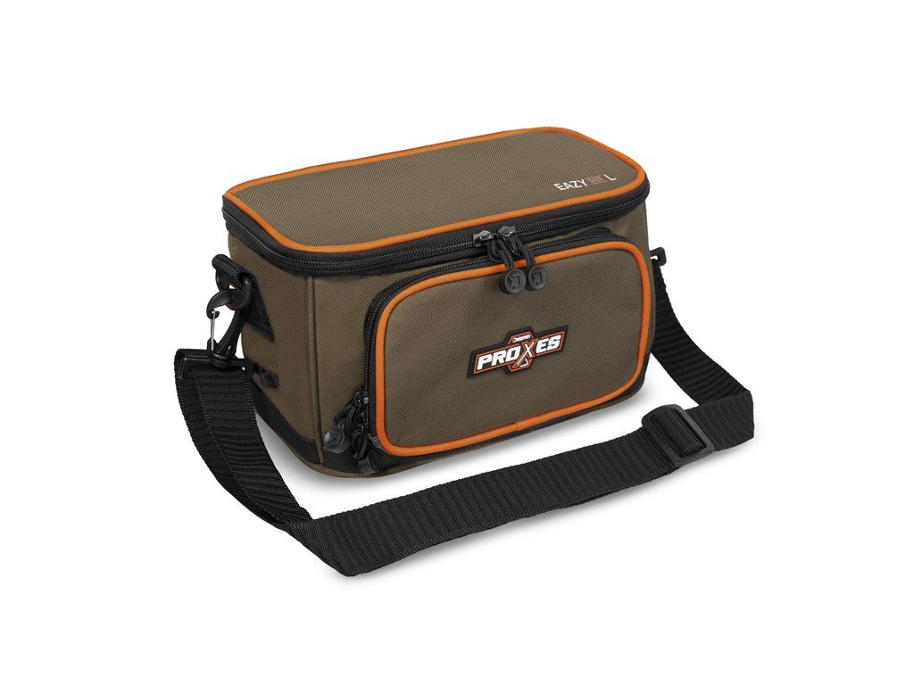 Delphin PROXES Easy L je kompaktná praktická taška, ktorej univerzálnosť a prevedenie ocenia najmä priaznivci prívlače, feedru či plávanej. Easy L, ale aj iné produkty zo série PROXES sú špecifické kvalitným prevedením, vysokou praktickosťou, 100% funkčnosťou a to všetko za veľmi príjemnú obstarávaciu cenu. Farebná kombinácia série PROXES poskytuje decentný vzhľad ladiaci s prírodou. Oranžové lemy predstavujú príjemný kontrast a zároveň poskytujú lepšiu viditeľnosť za nepriaznivých poveternostných podmienok alebo za šera. Taška je zhotovená z kvalitných a odolných materiálov. Navyše je jej spodná časť dodatočne chránená gumovou vrstvou presahujúcou nad dno tašky pre zamedzenie prestupu vlhkosti z mokrej zeme. Hlavnú časť tašky tvorí dostatočne veľký ukladací priestor, v ktorom je už v základe umiestnený priehľadný plastový box s usporiadateľnými priehradkami, vďaka čomu budete mať dokonalý prehľad nad jeho obsahom. Box je svojimi rozmermi vhodný napríklad na prívlačové nástrahy, feedrové krmítka, či iné menšie príslušenstvo. Prístup do hlavného úložného priestoru poskytuje kvalitný zips s ťaháčikmi a s logom značky Delphin. Veko tašky z vnútornej strany navyše ukrýva zipsovateľné vrecko zo sieťoviny na uloženie drobnej rybárskej bižutérie alebo dokladov. Okrem toho taška ponúka ďalší ukladací priestor vo forme zipsovateľného vrecka na prednej strane. Pretože pri všetkých našich produktoch dbáme na detaily, aj pri taške Easy L sme na oboch stranách tašky pridali pútka pre vloženie peanu alebo klieští. Tašku je možné pohodlne prenášať pomocou kvalitného, odopínateľného, dĺžkovo nastaviteľného popruhu pre nosenie cez rameno, alebo pomocou textilnej rukoväte umiestnenej na veku. Technické parametre L: Vonkajšie rozmery: 27x19x16cm Rozmer hlavnej časti: 27x16x16cm Rozmer predného vrecka: 16x11x3cm Rozmery boxu:: 23x12x4 cmDodatočné parametre