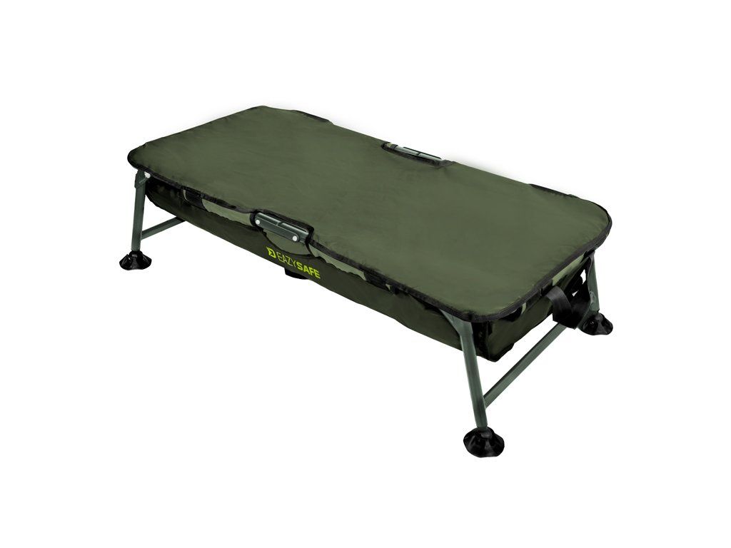 Pri navrhovaní tohto produktu bol cieľ jasný. Priniesť na trh vaničku, za bezkonkurenčnú cenu, ktorá bez problémov zvládne aj tie najväčšie ryby. Výsledok? Delphin EazySAFE! Základ podložky tvorí veľmi pevná železná konštrukcia s priemerom rúrok až 22 mm. Vďaka tomu má vanička výbornú stabilitu a nehrozí jej prevrátenie, prípadne poškodenie pri manipulácií s úlovkom. Použitá látka s pogumovaným povrchom má niekoľko výhod. Po ukončení lovu ju stačí do sucha vyutierať a nie je tak nutné dlho čakať kým vyschne. Navyše je veľmi ľahko umývateľná a neabsorbuje do seba nepríjemne pachy, ktoré sa môžu následne šíriť pri transporte vo vašom aute. Celá vanička je veľmi pevná a pri extrémnych testoch bez problémov zvládla udržať statické závažie o váhe až 75kg! Na oboch krajoch je všitá sieťková látka, cez ktorú z vnútra poľahky odtečie voda. EAZYSAFE taktiež disponuje látkou na prekrytie, ktorá je opatrená suchými zipsami. Viete tak v nej rybu uzavrieť, pokiaľ si napríklad potrebujete pripraviť fotoaparát, prípadne ísť nabrať vodu na poliatie úlovku. Nohy sú opatrené kĺbovými pätkami, ktoré sa prispôsobia terénu a zamedzia zaboreniu do zeme v prípade mäkšieho podkladu. Pri navrhovaní sme však mysleli aj na transport, čo je ďalšia silná stránka tohto produktu. V strede je konštrukcia dômyselne predelená a tak ju stačí jednoducho preložiť napoly a pomocou rukovätí pohodlne prenášať. V produkte Delphin EAZYSAFE získate za výbornú cenu jednoduchú, no zato dôkladne premyslenú a 100% funkčnú vaničku, v ktorej sa o svoj úlovok nebudete musieť nikdy obávať. Technické parametre: Vonkajšie rozmery: 100x50x30cm Rozmer lôžka: 95x45x20cm Transportné rozmery: 50x50x12cm Hmotnosť: 3,60kgDodatočné parametre