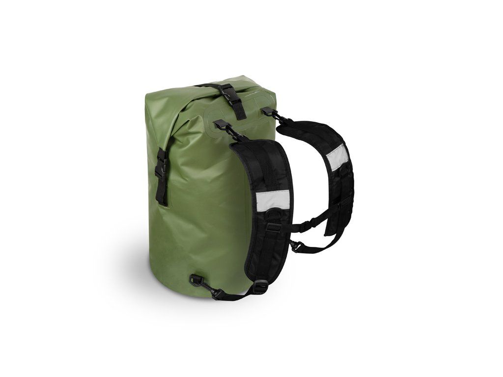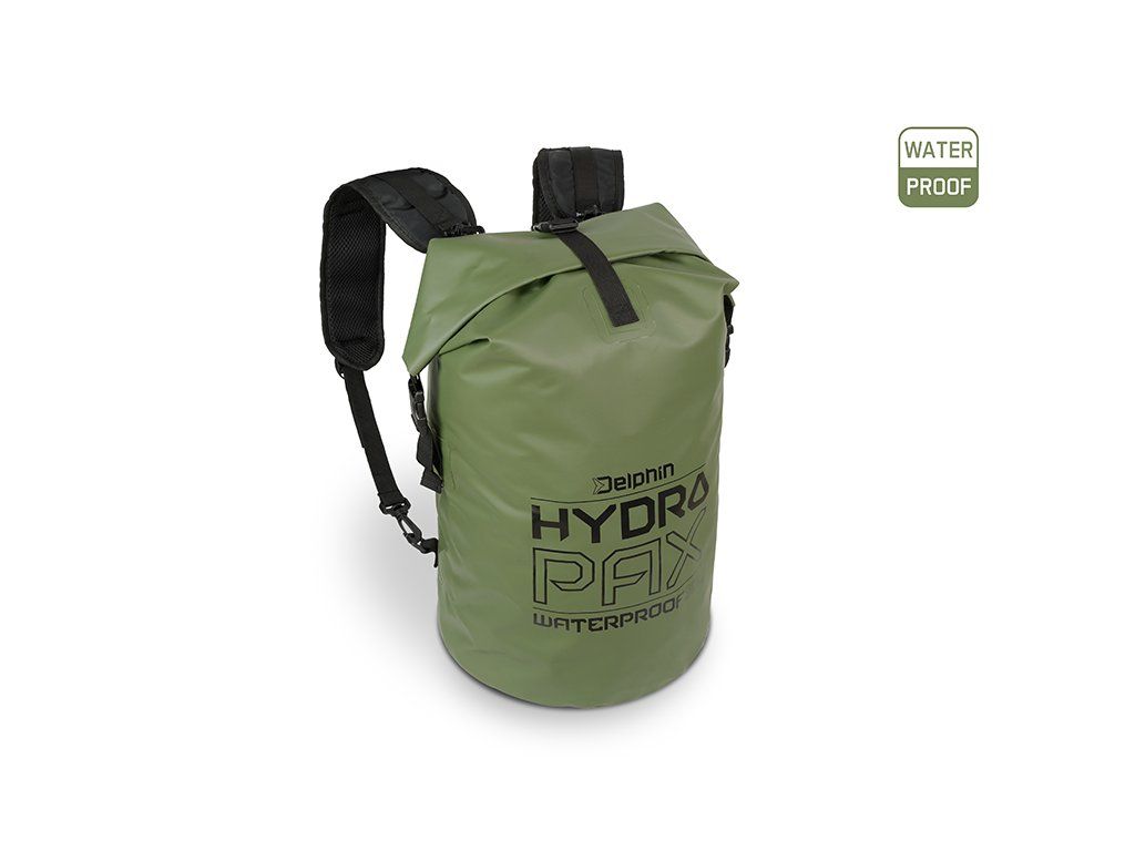 Kompletne nepremokavý batoh s odnímateľnými popruhmi a univerzálnym využitím ako EVA taška alebo klasický ruksak. HydroPAX je vyrobený z vodeodolného EVA materiálu, ktorý ochráni Vaše náčinie, prípadne oblečenie pred vodou a zároveň je veľmi ľahko udržiavateľný. Povrch stačí pretrieť handričkou a v priebehu pár minút je suchý. Navyše ak sa Vám vyleje voda alebo iná tekutina vo vnútri, jednoducho ju vylejete a vnútro očistíte. Zatváranie batohu je zabezpečené pomocou pevného popruhu s dvomi klipmi na vrchu batoha, ktorý si v rýchlosti niekoľkokrát zarolujete a klipy zapnete o ich druhú polovicu prichytenú na taške. Pre dodatočné zaistenie po uzatvorení slúži ďalší plastový klip v hornej časti. Pre ľahký a rýchly transport bolo pridané praktické gumové držadlo a ramenné popruhy disponujúce sponami, pre uchytenie na obidvoch koncoch, vďaka ktorým je ich možné kedykoľvek odobrať. Popruhy sú dostatočne polstrované a z vnútornej strany sme použili perforovanú tkaninu umožňujúcu zlepšené odvetrávanie počas nosenia. Sú taktiež nastaviteľné, doplnené o plastový klip pre ich vzájomné spojenie a dve odrazky pre zvýšenie viditeľnosti. Tmavozelený materiál je doplnený čiernymi doplnkami a tiež zaujímavou grafikou dodávajúcou batohu osobitý štýl.Dodatočné parametre